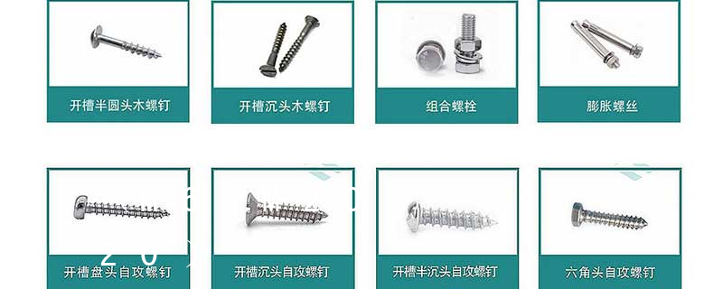螺栓有:1、方頭螺栓,2、半圓頭方頸螺栓,3、十字槽盤頭螺釘,4、內六角沉頭螺釘,5、方螺母C級,6、蝶形螺母,7、六角頭螺栓,8、十字槽盤頭自攻螺釘。大小有M18、M6、M8、M16、M10、M12、M14、M20等型號。通常用 GB/T 11-1988沉頭帶榫螺栓 GB